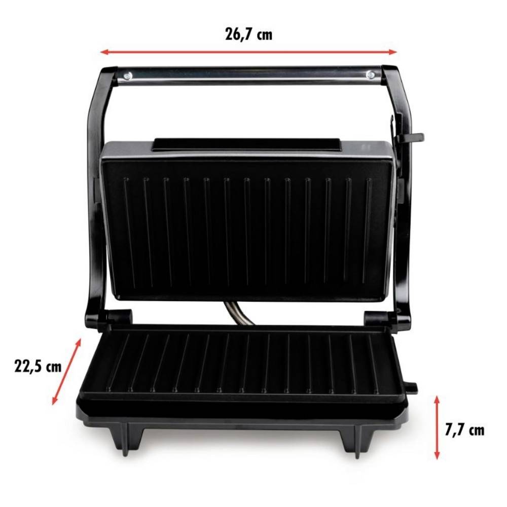 Technical specifications: Grillező felület (hosszúság): 230 mm · Grillező felület (szélesség): 145 mm · Kivitel (grill): Elektromos · Konyhagép jellemzők: Tapadásmentes bevonat,Összehajtható · Szín: Fekete · Teljesítmény: 700 W