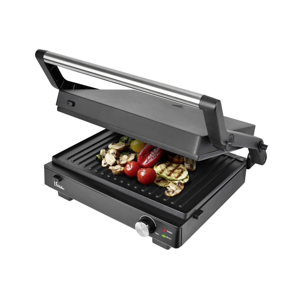BiKitchen grill 200 Kontakt grill Elektromos Visszajelző lámpa, Összehajtható, fokozatmentes hőmérséklet szabályozó Fekete