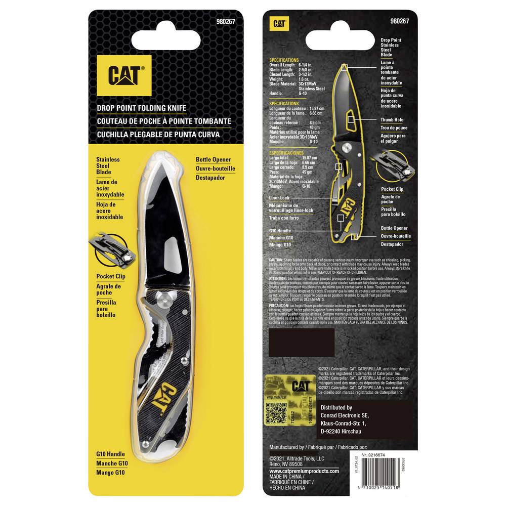 CAT 980267 CAT összecsukható kés 6,7 cm-es pengével és övcsipesszel Hossz 158 mm