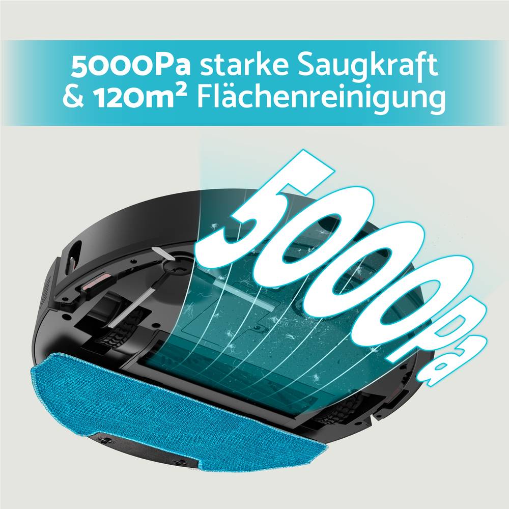 Equipment: Szívófunkció 120 m² szívófelülettel és nagy, 5000 Pa szívóteljesítménnyel