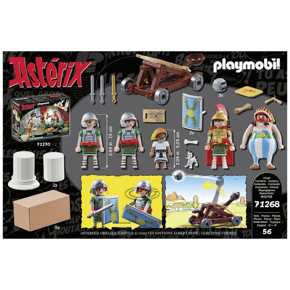 Szállítás tartalma: Ábrák: Obelix, Numberobis, 3 Róm, Állatok: idefix, Tartozékok: 1 katapult, 5 kő, 4 oszlopelem, 3 katapult kő, 2 pajzs, 3 sisak, 1 toll, 3 kard, 1 köpeny, 2 fejkendő, 1 tervrajz, 1 tekercs, 1 nyaklánc, 1 csont, 1 alaplap .