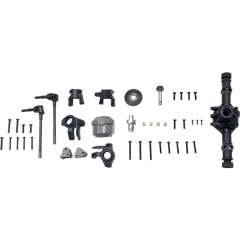 Technical specifications: A következő márkákhoz alkalmas: Reely · Alkalmas a következő alvázhoz: RCX-10 · Alkalmas a következő modellekhez: 1:10 Elektro Crawler Free Men RtR (Best. Nr.: 1692233).,1:10 Elektro Crawler Free Men Bausatz (Best. Nr.: 1893843). · Alkalmazási cél: Tartozék · Alkatrész kivitel: Tengely és felfüggesztés készlet