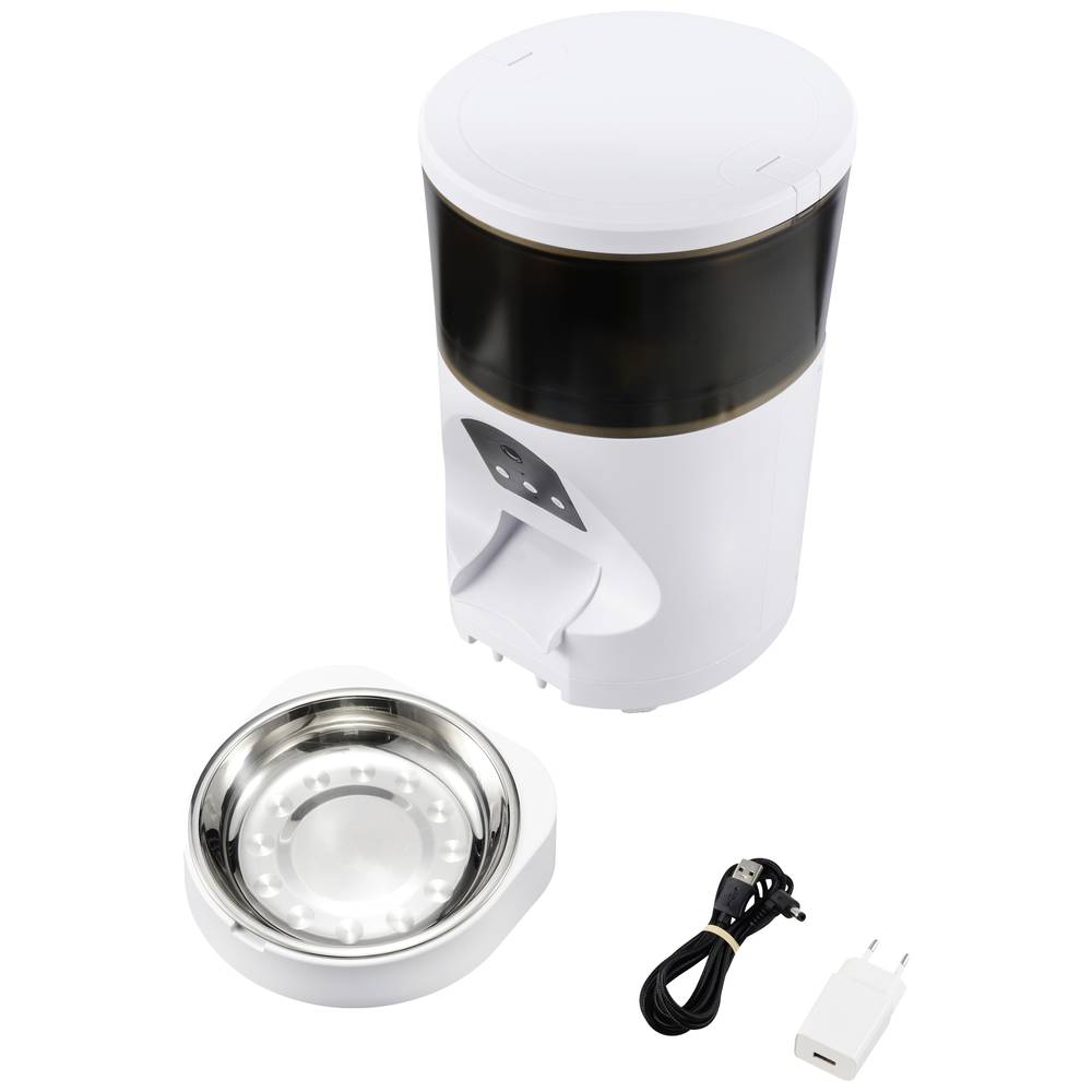Biztonságos és megbízhatóAz etető úgy van kialakítva, hogy megvédje az állatok fejét és fülét evés közben. Az adagalapú etetés áramkimaradás esetén is rendszeresen megtörténik, mivel a készülék hálózati adapterrel (tartozék) vagy elemekkel (nem tartozék) is működtethető. Az etetőállomás négy literes űrtartalmú, könnyen szétszerelhető és tisztítható.