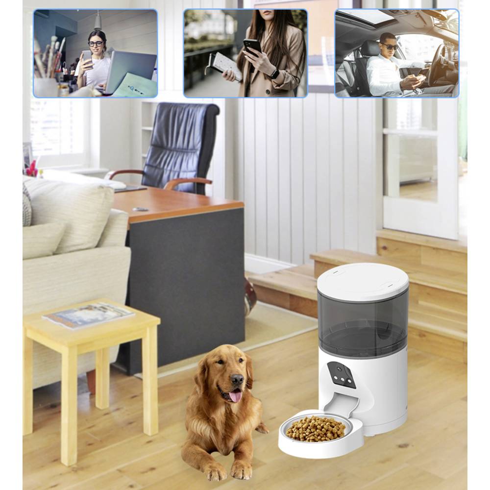 Kapcsolatfelvétel okostelefonon keresztülAz etetőállomás nemcsak okostelefonon keresztül vezérelhető: a beépített full HD kamera valós idejű videókat és nagy felbontású képeket biztosít a négylábú barátairól, akik otthon maradnak. És még hangalapú interakció is lehetséges az adagolón keresztül. Megnyugtató érzés mindkét fél számára.