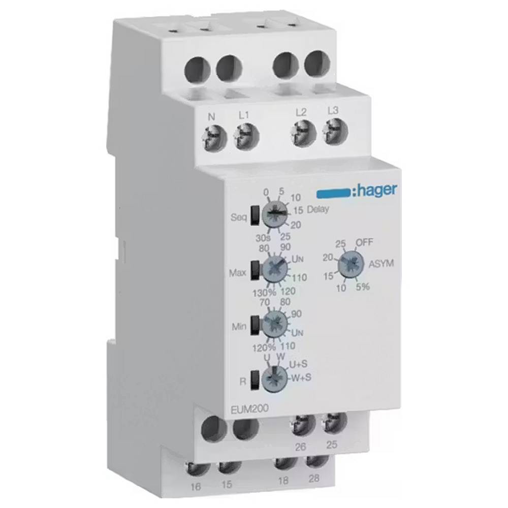 Hager EUM200 vezérlőrelé feszültség állítható 1P+N/3P(N) 2We
