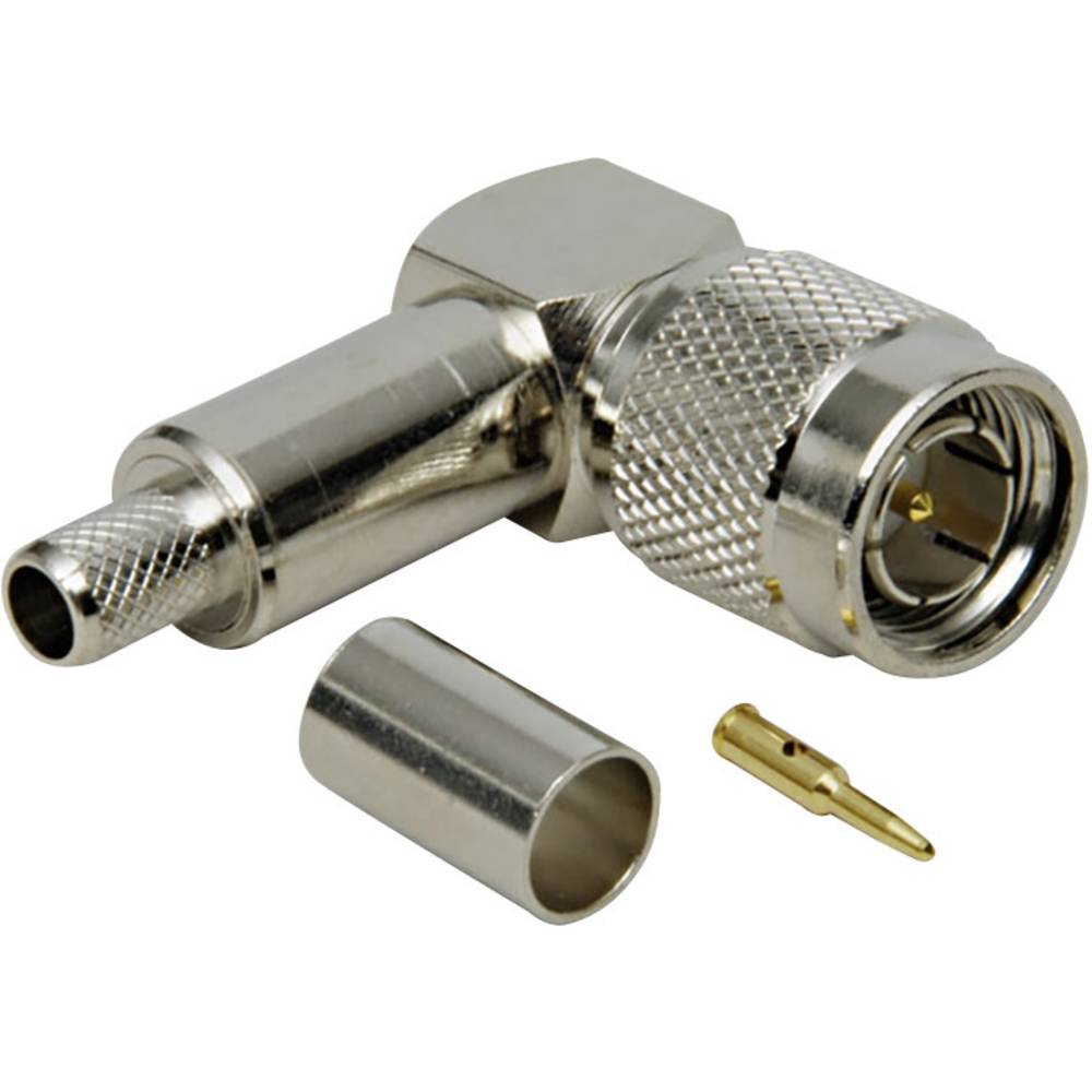 Műszaki adatok: Csatlakozó (építőelem): Krimpelős · Csatlakozó kivitel: Dugó, hajlított · Frekvencia (max.): 4 GHz · Ház anyaga: Sárgaréz nikkelezett · Impedancia (egész szám): 50 Ω · Kábelcsoport: RG 58 C/U · Szigetelőanyag: Delrin · Ø (kábel tartóval): 3.2 mm