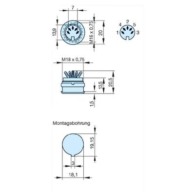 Műszaki adatok: Csatlakozó: Forrasztható · Csatlakozó típus: DIN kerek csatlakozóhüvely · Dugócsatlakozó kivitel: Alj, beépíthető, függőleges · Gyártói szám: MAB 5100 S · Kivitel: Beépíthető alj, becsavarható · Névleges feszültség: 34 V · Névleges áram: 4 A · Pólusszám: 5 · Rögzítés: Csavaros zár · Szín: Szürke · Tartalom: 1 db · Típus: 4 · Védelmi típus: IP30 · Érintkezőanyag: Ónozott