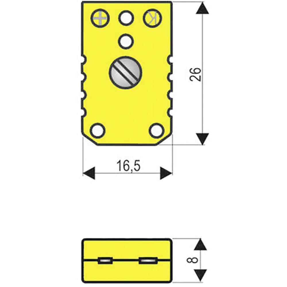 Műszaki adatok: Csatlakozó (speciális): - · Gyártói szám: THERMOBUCHSE/-KUPPLUNG · Hőmérséklettartomány: -50 - +120 °C · Keresztmetszet: 0.5 mm² · Kivitel: Miniatűr hüvely · Szabványok/Vizsgálati jelek: IEC 584 · Szín: Sárga · Tartalom: 1 db · Típus: K · Érintkezőanyag: NiCr-Ni