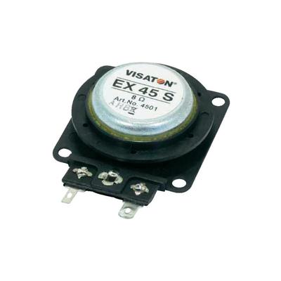 Műszaki adatok: Gyártói szám: EX 45 S · Impedancia: 8 Ω · Méret, hossz: 46 mm · Méret, magasság: 17 mm · Méret, szélesség: 46 mm · Súly: 60 g · Tartalom: 1 db · További műszaki adatok: Lengőtekercs átmérő: 25,4 mm