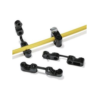 Kábelek rögzítésére, műanyagból, különféle csavarozható lyuk-távval. Kerek kábelekhez.