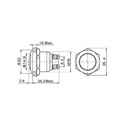 Vandálbiztos nyomógomb 19mm GQ19B-N 2A/48V