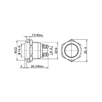 Vandálbiztos nyomógomb 19mm GQ19F-N 2A/48V