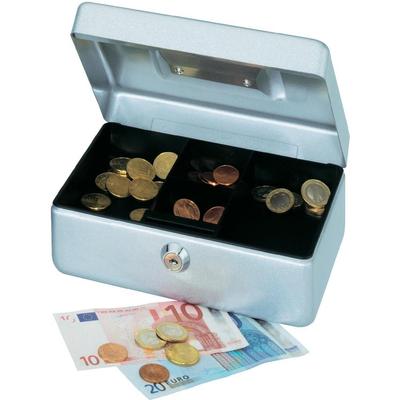 A lezárható pénzkazetta garantálja a váltópénz biztos tárolását és praktikus kezelését. A felső- és alsó része egyenként egy darab kihúzott acéllemezből áll. Szolid nyelves cilinderzár 2 kulccsal. Nikkelezett ráfekvő fogantyú. Komplett pénzrekesszel.