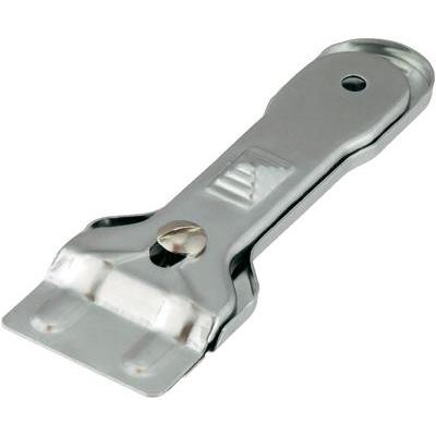 Jellemzők: Fémház mérete: 138 x 46 mm · Penge: borotvapenge · Biztonsági zár · Szín: ezüst színű · Alkalmazás célja: üvegkerámia tisztítás · Csomagolási méret cm-ben: HxSzéxMa: 23,2 x 9,3 x 1,7 ·