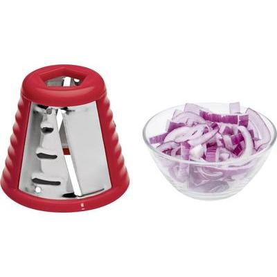 Elektromos aprítómű 5 különböző nemesacél betéttel a vágáshoz, reszeléshez és morzsoláshoz Nagy betöltő nyílás (ø 60 mm)