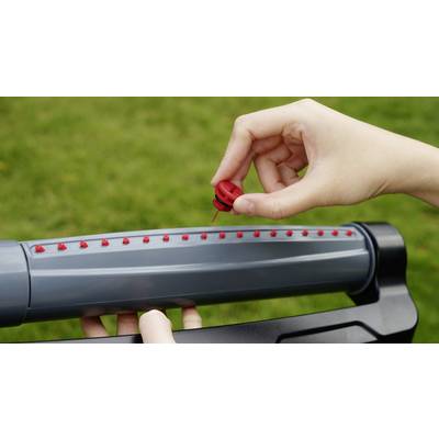Technical specifications: Csőcsatlakozó: Dugaszolós csatlakozó,16 - 19 mm (3/4") Ø ,13 mm (1/2") Ø · Felület típus: Négyszög · Hatótáv (max.): 22 m · Hatótávolság (min.): 0 m · Irrigated area (max.): 418 m² · Méret, magasság: 470 mm · Méret, mélység: 72.8 mm · Méret, szélesség: 168 mm · Permet szélessége: 19 m · Szórási szélesség (min.): 0 m