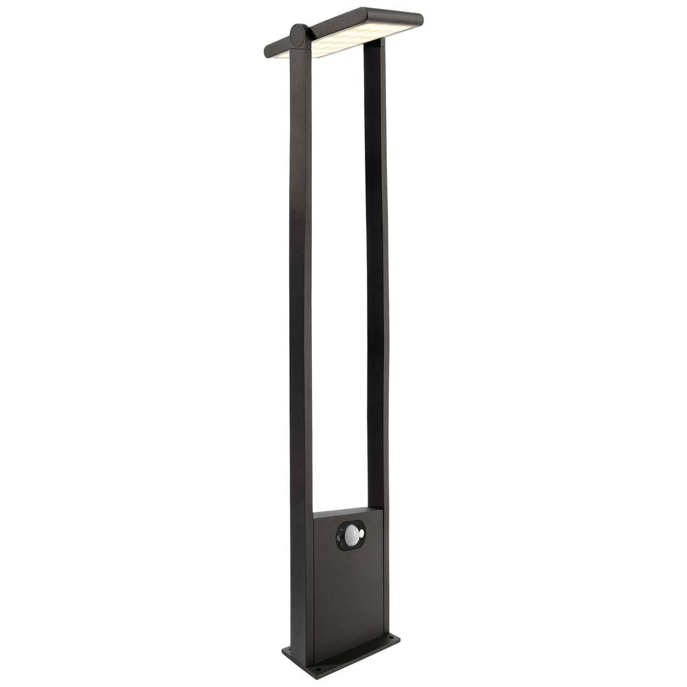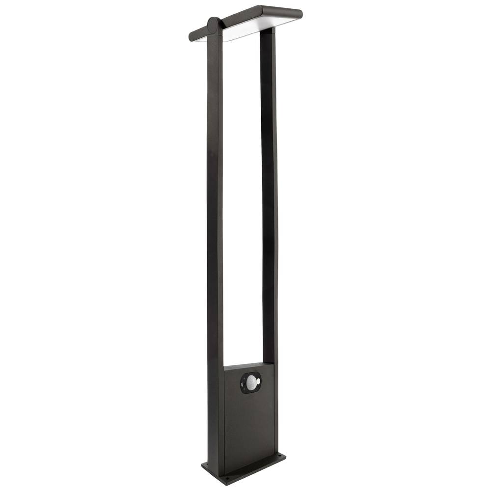 Műszaki adatok: 2021-es energiahatékonysági osztályok: n.rel. · Anyag: Alumínium, Műanyag · Beállítható világítási időtartam, max.: 8 perc · Beállítható világítási időtartam, min.: 8 mp · Foglalat: Fixen beépített LED-es · Forgási tartomány, max.: 180 ° · Fényforrás típus: LED · Fényforrások száma: 1 · Fényszín: 3200 K · Fényszín (fényforrás): Melegfehér · Fényáram összesen: 170 lm · Gyártói szín: Sötétszürke · Helyiség: Terasz/ülősarok, Ház/garázs, Járda megvilágítás, Hangulatos kertvilágítás · Lámpa jellemzők: Mozgásérzékelővel · Méret, hossz: 200 mm · Méret, magasság: 1000 mm · Méret, szélesség: 151 mm · Stílus: Modern/dizájn · Súly: 5120 g · Teljesítmény: 1.6 W · Védelmi osztály: III · Védelmi típus: IP54 · Vízszintes látószög: 120 ° · Észlelési szélesség, max.: 10 m · Üzemi feszültség: 3.7 V