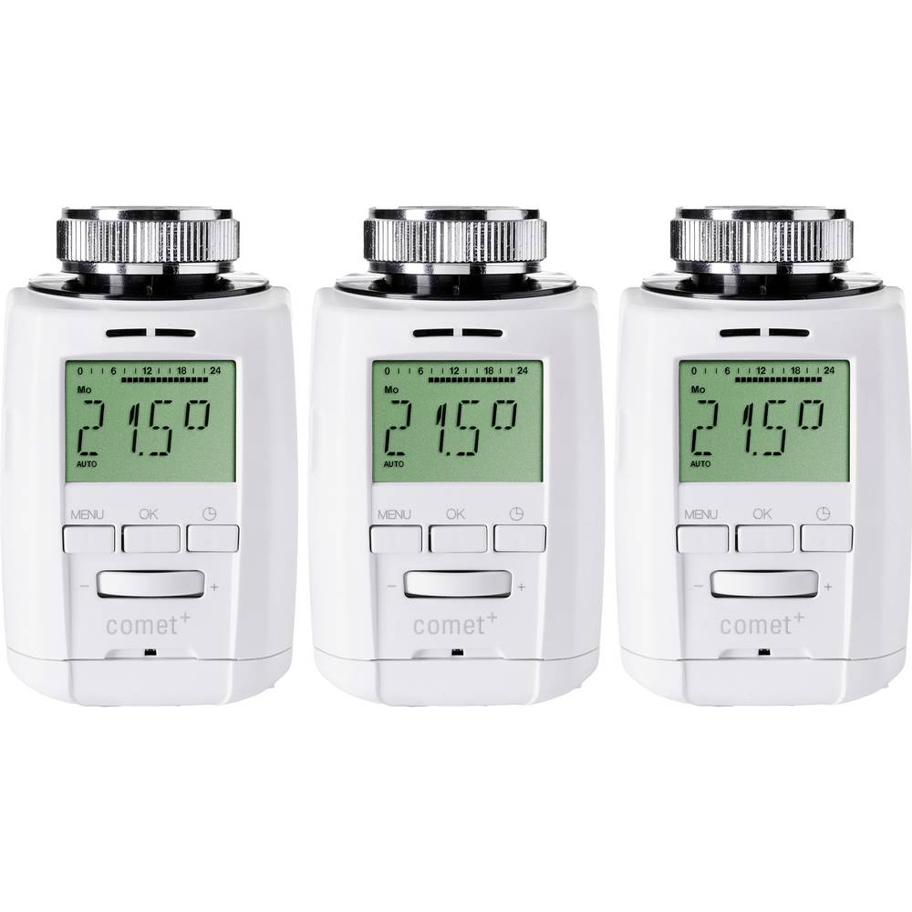 Szállítás tartalma: 3 x Comet Plus energiatakarékos vezérlő,3 x 3 adapter (Danfoss RA, RAV, RAVL),3x2 db AA mignon elem,Használati útmutató HU