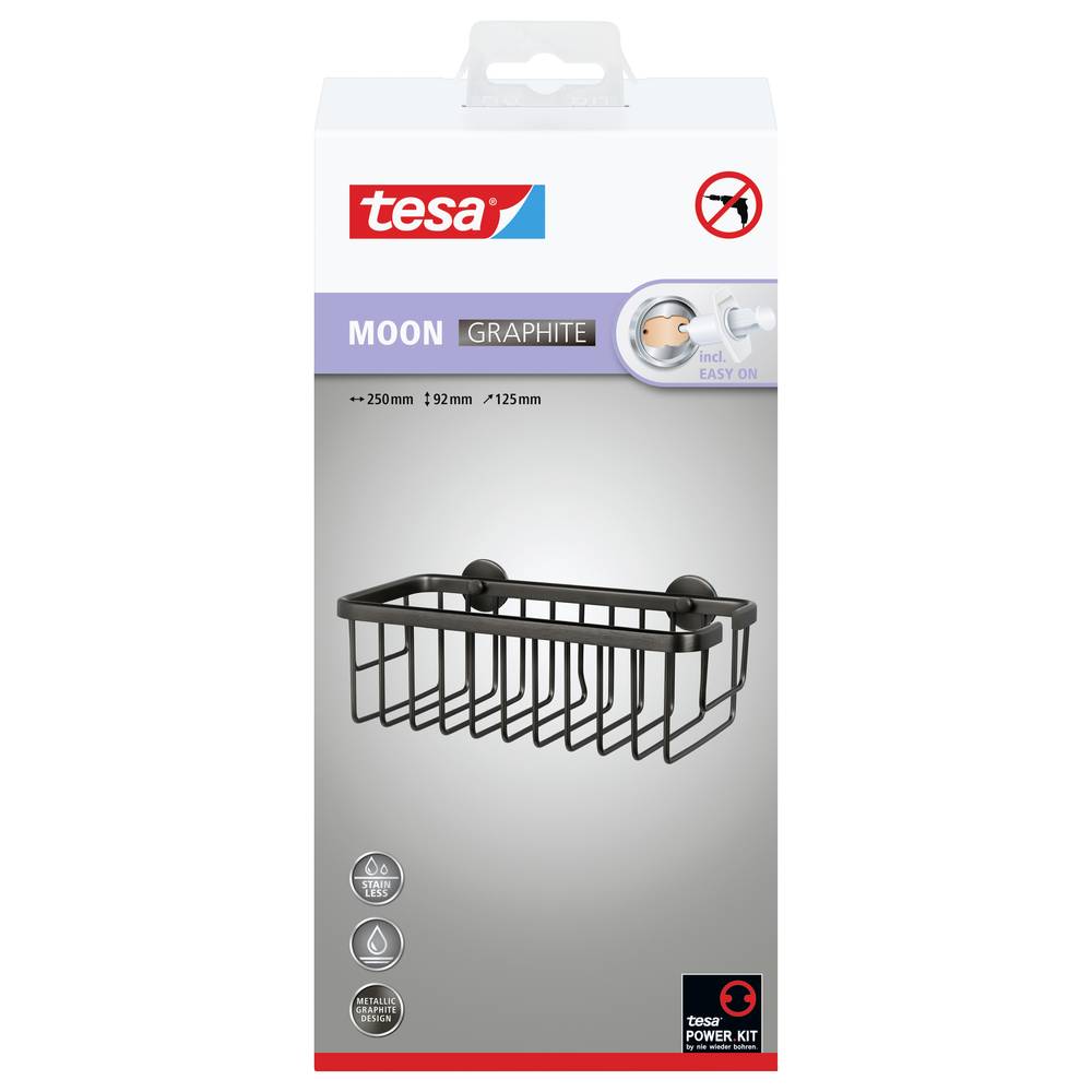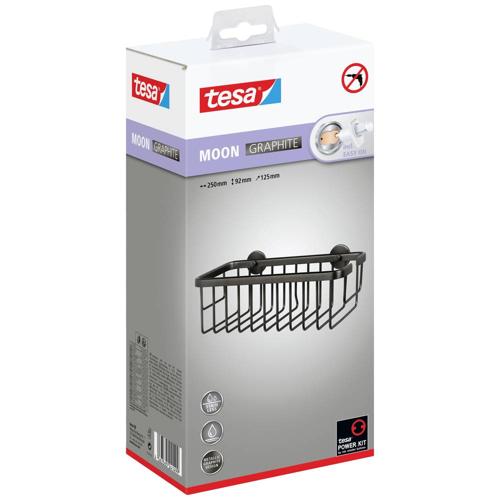 tesa® MOON öntapadó zuhanypolc szálcsiszolt grafitból - egyszintes és extra mély - zuhanypolc PVD-bevonatú fémből - fúrás nélkül, ragasztóoldattal
