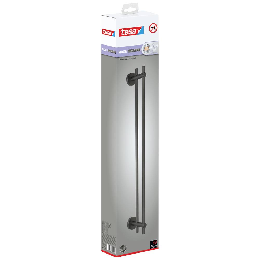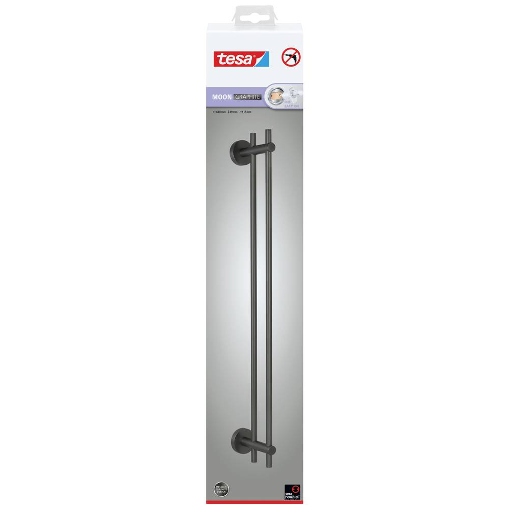 tesa® MOON dupla törülközőtartó szálcsiszolt grafitból - öntapadó törülközőtartó 2 sínnel - PVD-bevonatú fémből - nincs szükség fúrásra, beleértve a ragasztóoldatot is