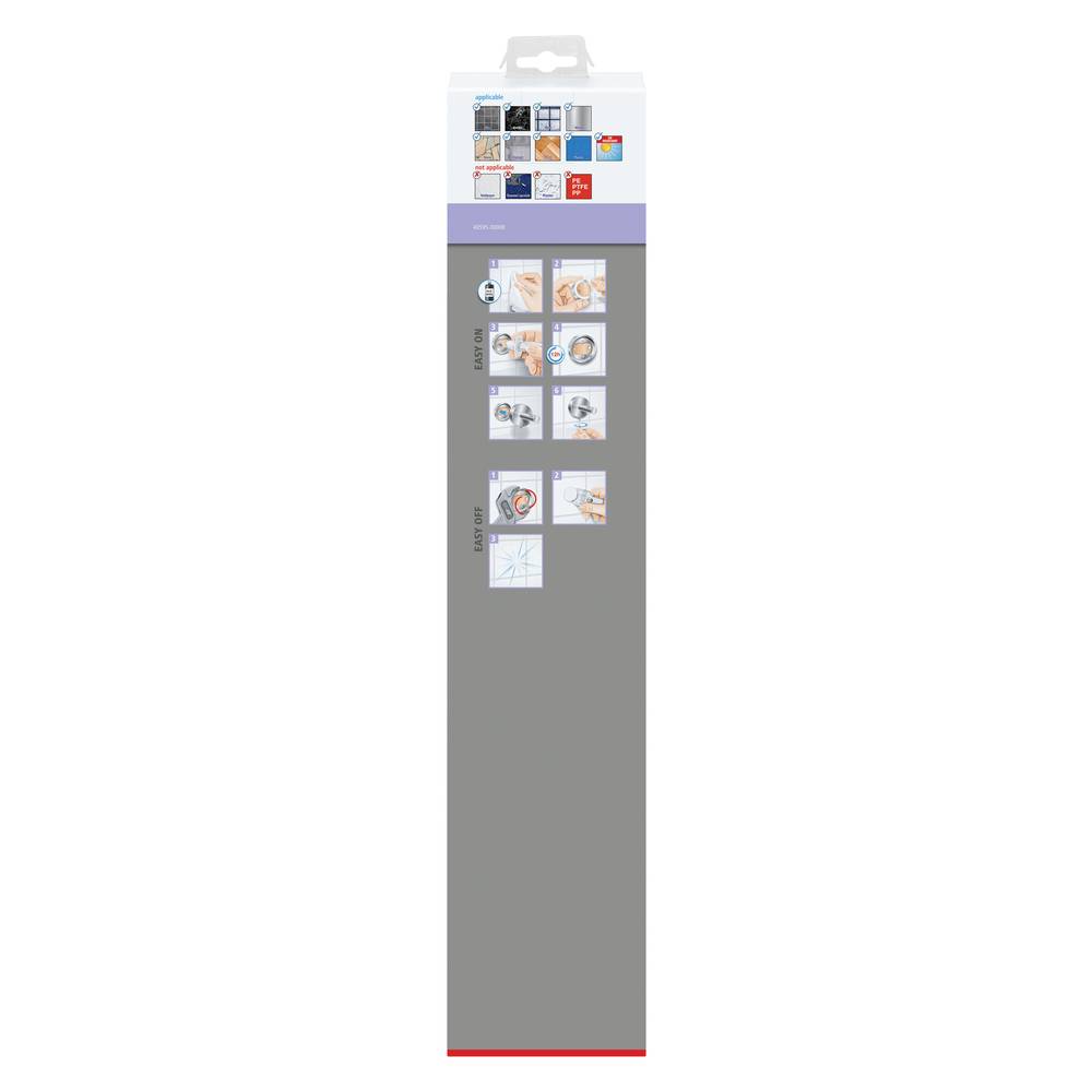 A fejlett és megbízható ragasztómegoldásnak köszönhetően a szerelés fúrás nélkül történik. Ez azt jelenti, hogy a falak és a csempék nem sérülnek meg. Eltávolításkor nem marad nyom a felületen. Könnyen újrafelhasználható egy új, hozzáillő adapterrel. Figyelem! Használatkor veszélyes, respirábilis por képződhet. A port nem szabad belélegezni.