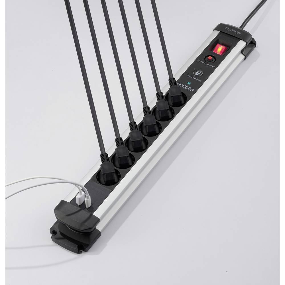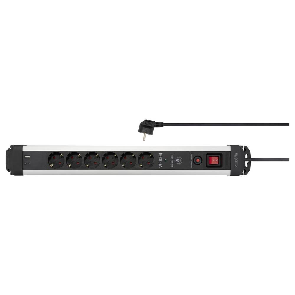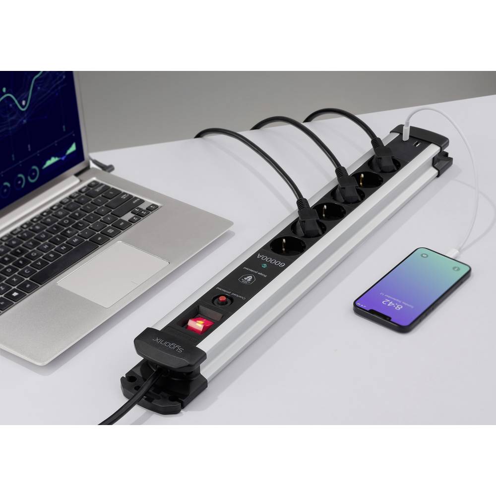 Technical specifications: Product.PlasticfreePackaging: #####PlastikfreieVerpackung · Alkalmazási terület: Beltér · Anyag: Alumínium · Dugaljak száma: 6 · Hálózati csatlakozó típus: Védőérintkezős · Hálózati elosztó jellemzők: Kapcsolóval,USB-vel,#####mit USB-C®,Túlfeszültség elleni védelem · Kivitel: USB-A: 5 V/DC 2,4 A, max. 12 W.