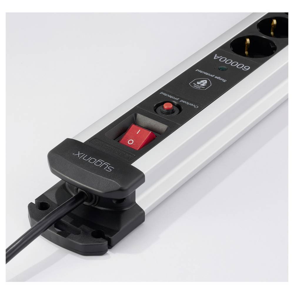 Sygonix SY-6805674 Túlfeszültség ellen védő elosztó 6 részes Fekete,#####Silver Védőérintkezős 1 db