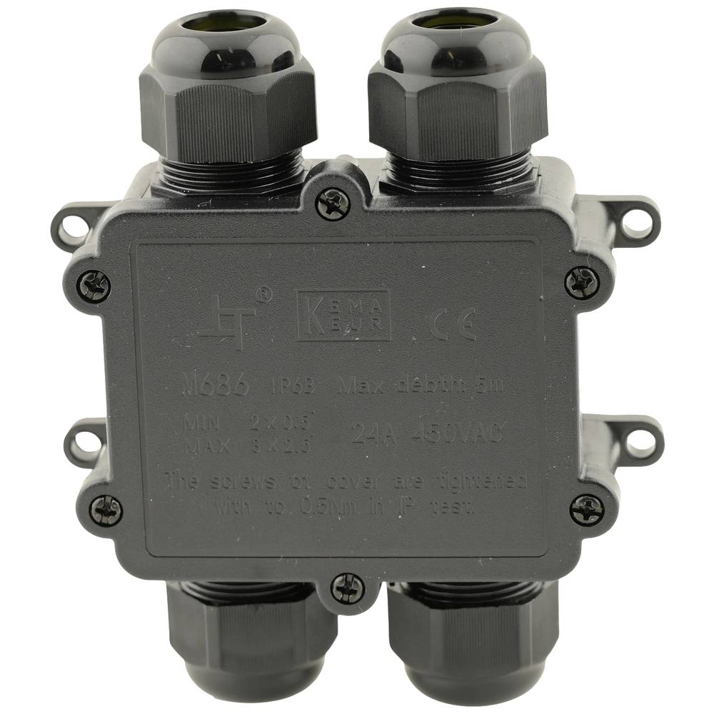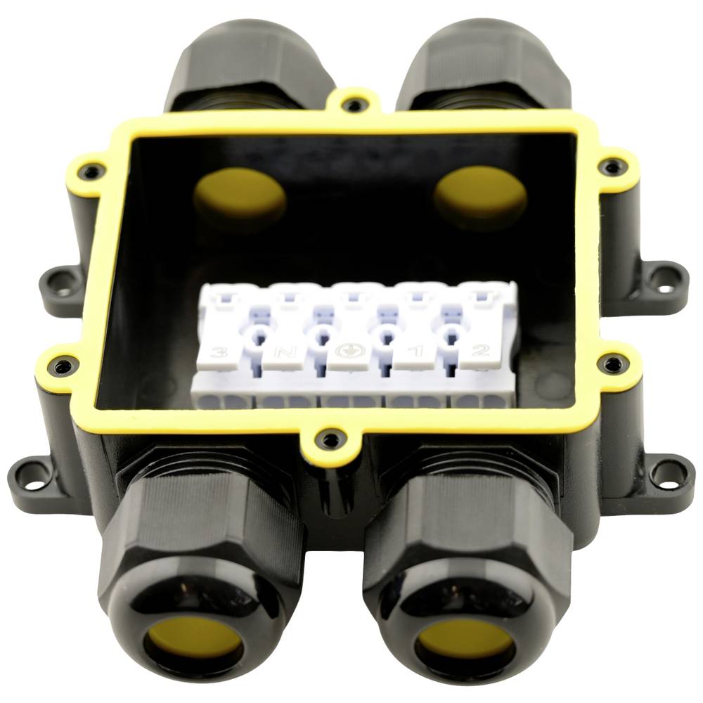 A Boxexpert 5 tűs vízálló csatlakozódoboza egy első osztályú ház, amely ideális kültéri használatra (pl. a kertben), nedves helyiségekben (például pincében, fürdőszobában, garázsban), víz alatt vagy a földben való használatra. kapcsolja ki és csatlakoztassa a földalatti kábeleket. A magas fokú IP68 védettségű csatlakozódobozok megakadályozzák a nedvesség behatolását az elektromos csatlakozásokba, legyen szó LED kerti világításról, tószivattyúról vagy szivattyúvezérlésről az ipari szektorban. A ház teljesen porálló és teljes védelmet nyújt a véletlen érintkezés ellen, és vízálló még állandó víz alá merítés esetén is. A ház tökéletes klasszikus, magas páratartalmú nedves helyiségekben, például fürdőszobákban, pincékben vagy garázsokban.