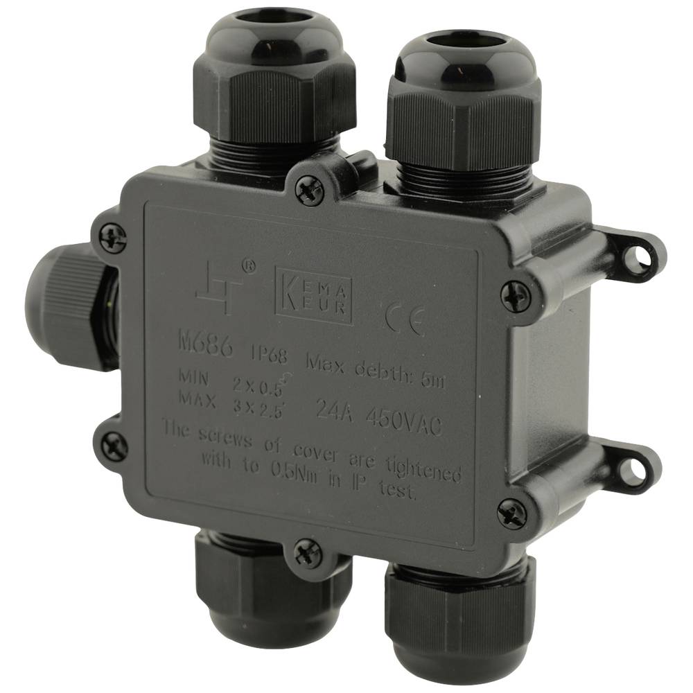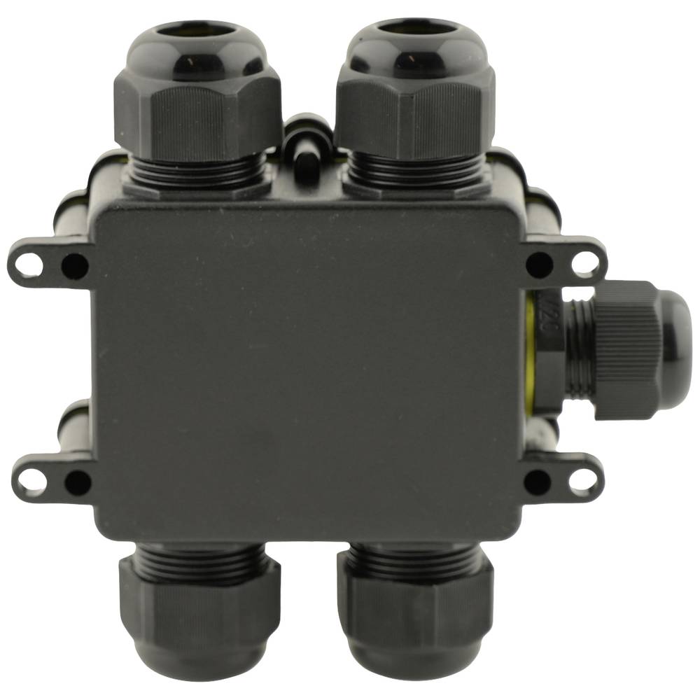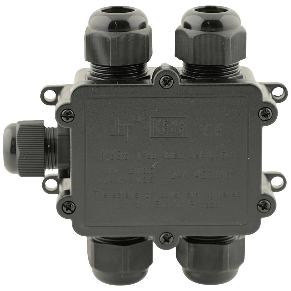 Az IP68 védelmi osztályú, 6 tűs vízhatlan csatlakozódoboz kiváló minőségű és tesztelt ház, amely ideális kültéri használatra, például kertben, nedves helyiségekben, víz alatt vagy talajban. Ezzel a kültéri csatlakozódobozsal csatlakoztathatja kültéri LED-es kerti világítását vagy tószivattyúját, és a magas fokú IP68-as védettségnek és a vízálló kábelhüvelyeknek köszönhetően biztos lehet benne, hogy egy csepp nedvesség sem kerül az elektromos csatlakozásokhoz.