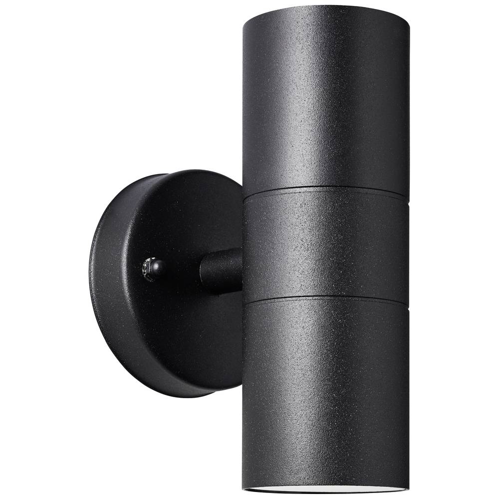 Műszaki adatok: 2021-es energiahatékonysági osztályok: n.rel. · Anyag: Fém, Üveg · Foglalat: GU10 · Fényforrással: Nem · Gyártói szín: Fekete · Helyiség: Terasz/ülősarok, Járda megvilágítás, Hangulatos kertvilágítás, Ház/garázs · Kivitel (lámpa): Hengeres · Lámpa jellemzők: Felfelé és lefelé világít · Méret, magasság: 170 mm · Méret, mélység: 112 mm · Méret, szélesség: 85 mm · Stílus: Fiatal lakás, Modern/dizájn · Súly: 533 g · További műszaki adatok: Szükséges megvilágító: 2x GU10, max. 18W · Védelmi osztály: I · Védelmi típus: IP44 · Üzemi feszültség: 230 V