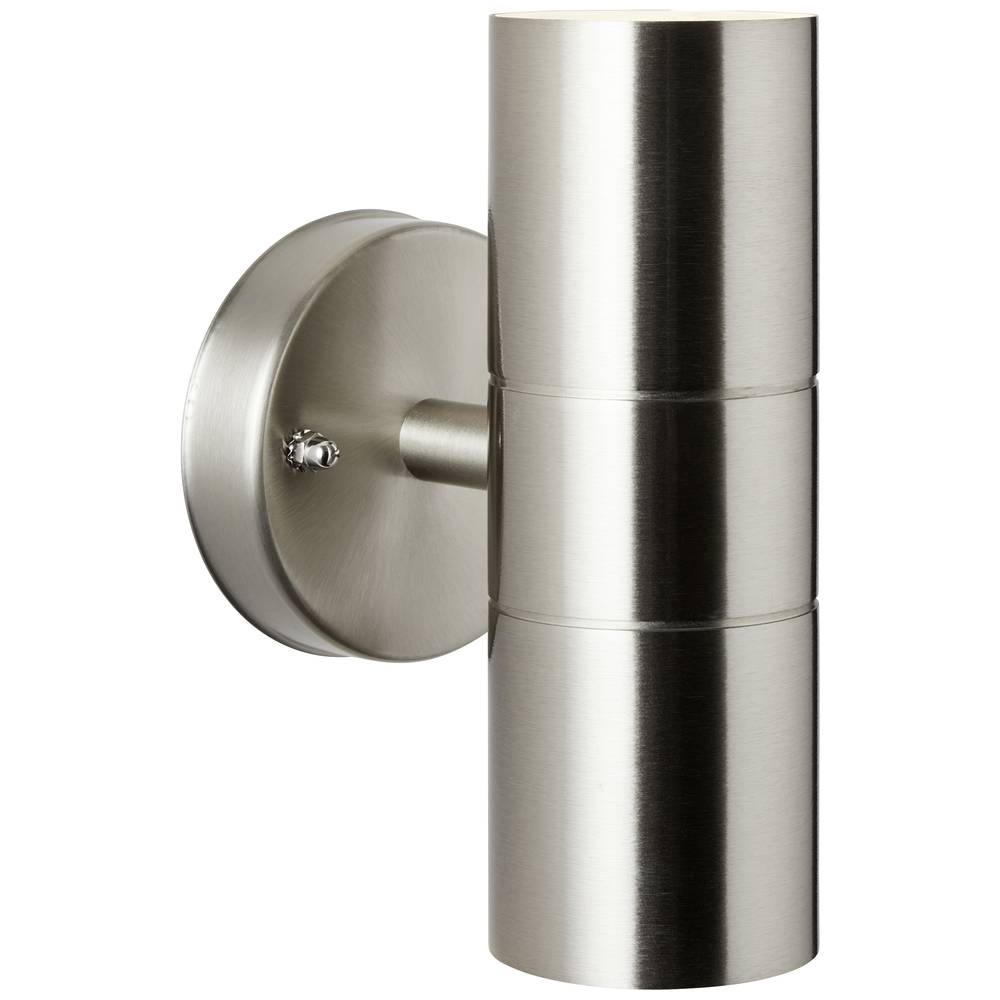 Műszaki adatok: 2021-es energiahatékonysági osztályok: n.rel. · Anyag: Fém, Üveg · Foglalat: GU10 · Fényforrással: Nem · Gyártói szín: Nemesacél · Helyiség: Terasz/ülősarok, Járda megvilágítás, Hangulatos kertvilágítás, Ház/garázs · Kivitel (lámpa): Hengeres · Lámpa jellemzők: Felfelé és lefelé világít · Méret, magasság: 170 mm · Méret, mélység: 112 mm · Méret, szélesség: 85 mm · Stílus: Fiatal lakás, Modern/dizájn · Súly: 533 g · További műszaki adatok: Szükséges megvilágító: 2x GU10, max. 18W · Védelmi osztály: I · Védelmi típus: IP44 · Üzemi feszültség: 230 V