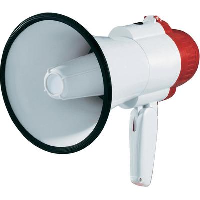 Műszaki adatok: Max. hatótáv (szabad területen): 250 m · Megafon jellemzők: Beépített hangok,Hordpánttal · Méret, hossz: 250 mm · Szín: Fehér-piros · Súly: 500 g · Teljesítmény: 15 W · Típus (kategória): Megafon · Átmérő: 153 mm