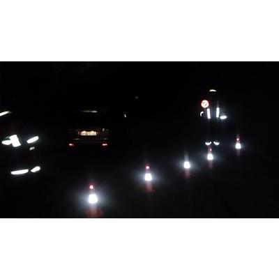 2 fényvisszaerő szalaggal és villogó LED-del valamint praktikus tároló táskával.