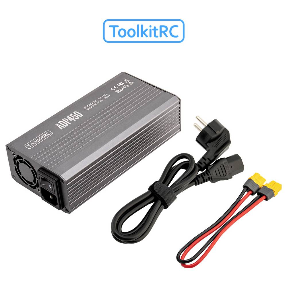 A ToolkitRC ADP450 tápegység stabil, 450 W teljesítményt biztosít 24 V kimeneti feszültség és 19 A áramerősség mellett. Aktív teljesítménytényező-korrekciós (PFC) technológiával rendelkezik, amely akár 94%-ra is növeli a hatásfokot. A készüléket töltők és egyéb XT60 csatlakozóval rendelkező eszközök tápellátására tervezték, különösen a ToolkitRC modellekhez, például az M8D, M6D, M8P és M9 modellekhez. A tápegység védelmi funkciókkal rendelkezik rövidzárlat, túláram, túlmelegedés, túlterhelés és túlfeszültség ellen.