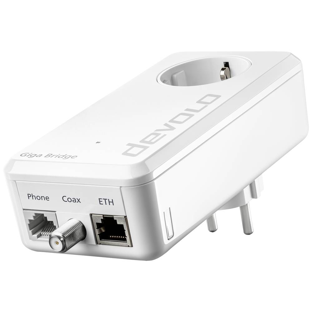 A devolo Giga Bridge az optikai kapcsolat sebességét közvetlenül az útválasztóhoz viszi. A házban meglévő koax- vagy telefonvonal pillanatok alatt szupergyors információs autópályává válik. A nagy teljesítményű WLAN-hoz és a tökéletes vezeték nélküli telefonáláshoz az egész házban.