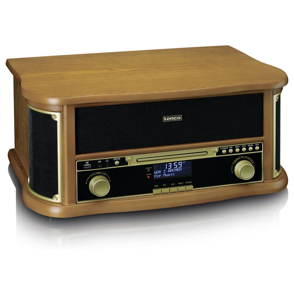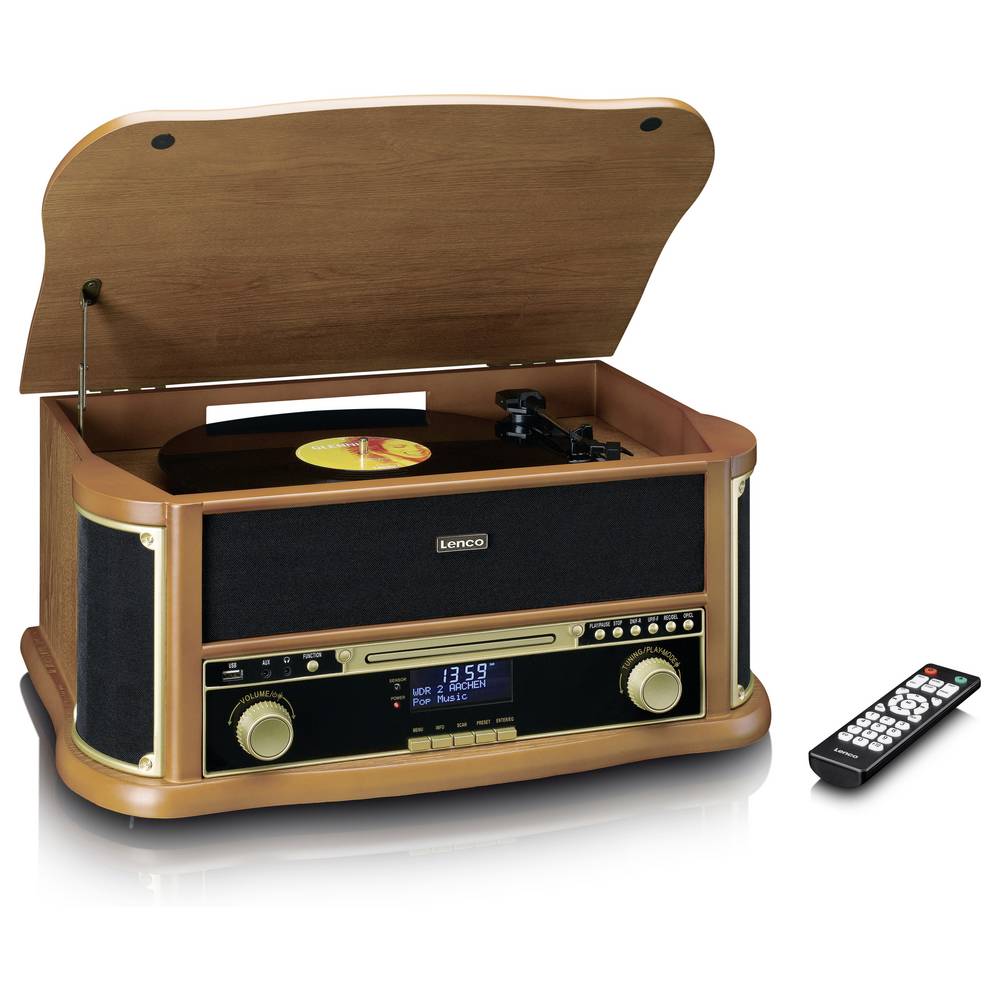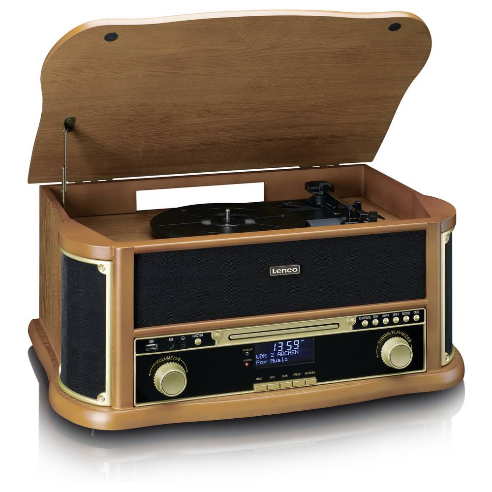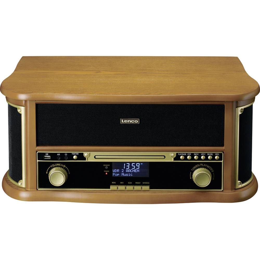 A Classic Phono (Lenco) TCD-2571WD egy többfunkciós, többfunkciós zenei rendszer gyönyörű retro dizájnnal, amely bármilyen belső teret gazdagít. A TCD-2571WD-t a beépített szíjhajtású lemezjátszó jellemzi, de ennél sokkal többet kínál. A TCD-2571WD könnyedén ötvözi a klasszikus funkciókat a modern lejátszási lehetőségekkel. A fából készült retro lemezjátszó többek között Bluetooth® vétellel, DAB+/FM rádióval, beépített CD-lejátszóval és kazettás magnóval rendelkezik. Ez teljes hallgatási élményt kínál, tökéletes egyensúlyt teremtve a vintage esztétika nosztalgikus varázsa és a modern funkcionalitás között. A TCD-2571WD MDF-házzal és távirányítóval rendelkezik a nagyobb kényelem érdekében.