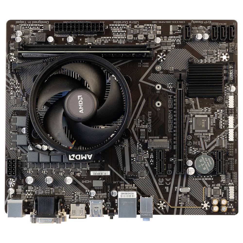 Technical specifications: ATT.LOV.EXTRA_GRAPHIC_ADAPTER: Nem · Alaplap: Gigabyte GA-A520M-S2H · Alaplap jellemzők: #####Lieferung inkl. CPU-Kühler · Alaplapi chipszet: AMD® A520 · Csatlakozók (számítástechnika/multimédia): Audio, 7.1 (3,5 mm jack),DVI,HDMI™,PS/2,RJ45,USB 2.0,USB 3.2 (1. generáció),VGA · Csatlakozók: DDR4: 2 x · Csatlakozók: PCIe x1: 1 x · Csatlakozók: PCIe x16 3.0: 1 x · Csatlakozók: PS/2: 1 x · Csatlakozók: USB 2.0: 2 x · Foglalat: AMD AM4 · Formafaktor: Micro-ATX · Interfész: hang (alaplapi): 7.1 HD · LAN / Gigabit LAN csatlakozók száma: 1 x · Memória ütem: 3200 MHz · Memóriatípus: DDR4-RAM · Munkamemória kapacitás: 16 GB · Processzor / modell: 5600X · Processzor / márka: AMD · Processzor magok száma: 6 x · Processzor sorozat: AMD Ryzen 5 · Processzor turbo ütemfrekvencia (max.): 4.6 GHz · Processzor ütemfrekvencia: 3.7 GHz · Processzor/Cache: 32 MB · RAM/Max felszerelés: 64 GB · USB A 3.0 csatlakozók: 4 x