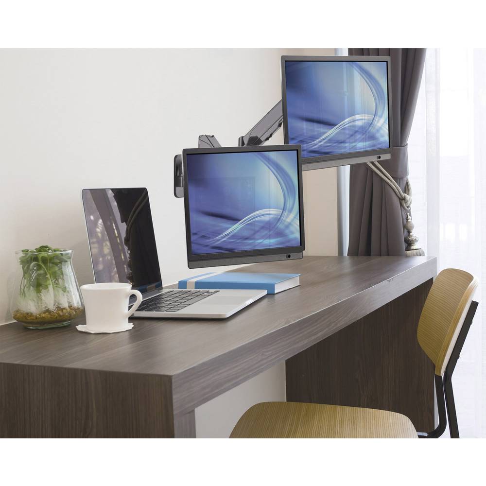 Műszaki adatok: Alkalmas Apple-höz: Nem · Döntési tartomány (felfelé): 35 ° · Döntési tartomány (lefelé): 35 ° · Felszerelhető kijelzők száma: 2 · Forgatás: 180 ° · Forgatási tartomány (balra): 90 ° · Forgatási tartomány (jobbra): 90 ° · Gáznyomásos technológia: Igen · Kijelző mérethez alkalmas (tartomány): 43,2 cm (17") - 81,3 cm (32") · Max. faltól való távolság: 422 mm · Méret, magasság: 280 mm · Méret, mélység: 100 mm · Méret, szélesség: 918 mm · Szín: Fekete · Súly: 4.1 kg · Tartó jellemzők: Gáznyomásos technika · Tartó típus: Forgatható,Állítható magasságú,Dönthető,Csuklóval mozgatható · Tartóerő (max.): 16 kg · Termék típus: Monitor fali tartó · VESA szabvány: 100 x 100 mm,100 x 75 mm,75 x 75 mm
