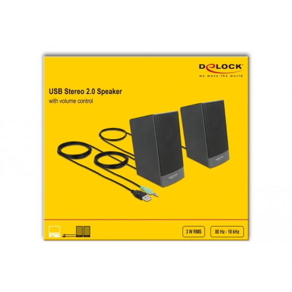 DeLOCK sztereó 2.0 PC hangszóró 3,5 mm-es jack csatlakozóval és USB tápegységgel