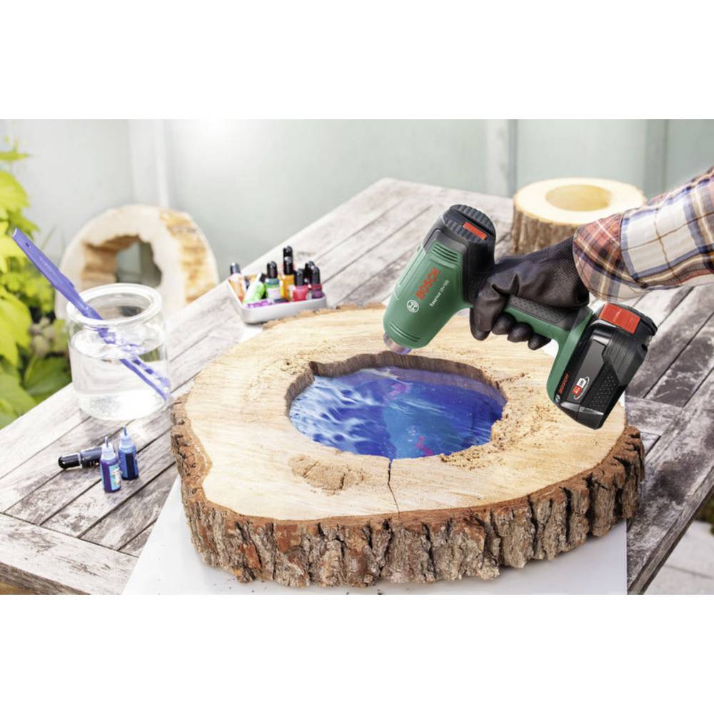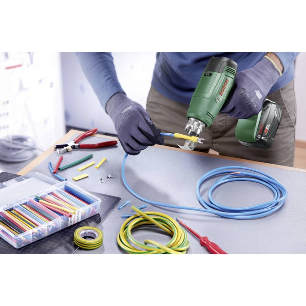 Akkus hőlégpisztoly EasyHeat 18V-500. Hordozható forrólevegős pisztoly a gyors és egyszerű forró levegő kijuttatáshoz. Akkus hőlégpisztoly a barkácsolás szerelmeseinek, hogy gyorsan, akár útközben is elvégezzék a munkájukat: ideális kábelek zsugorításához, címkék eltávolításához és egyéb egyszerű feladatokhoz. Kiváló fűtőelem technológia: egyenletes hőeloszlás a gyors és precíz meleglevegő-kijuttatásért. Állandó teljesítmény: állandó hőmérsékletet biztosít az akkumulátor teljes élettartama alatt. Boost mód: olyan feladatokhoz, amelyek magas hőmérsékletet igényelnek, mint például a festék eltávolítása vagy a szénsütő meggyújtása. Gumírozott hátlap: stabil parkolási helyzet a csúszásmentes felületnek köszönhetően. Kompatibilis a Bosch 18 V POWER FOR ALL akkumulátorral – az optimális teljesítmény érdekében 4 Ah vagy nagyobb teljesítmény mellett. Karton doboz. Szűkítő fúvóka (1 609 201 648)