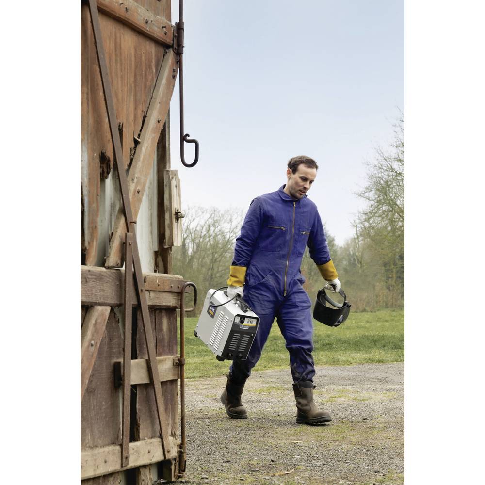 Műszaki adatok: Biztosítás: 16 A · Hegesztési áram (max.): 25 A · Hegesztési áram (min.): 10 A · Méret, hossz: 410 mm · Méret, magasság: 360 mm · Méret, szélesség: 200 mm · Súly: 15 kg · További műszaki adatok: Maximális vastagság 8 mm acélhoz, rozsdamentes acélhoz és öntöttvashoz