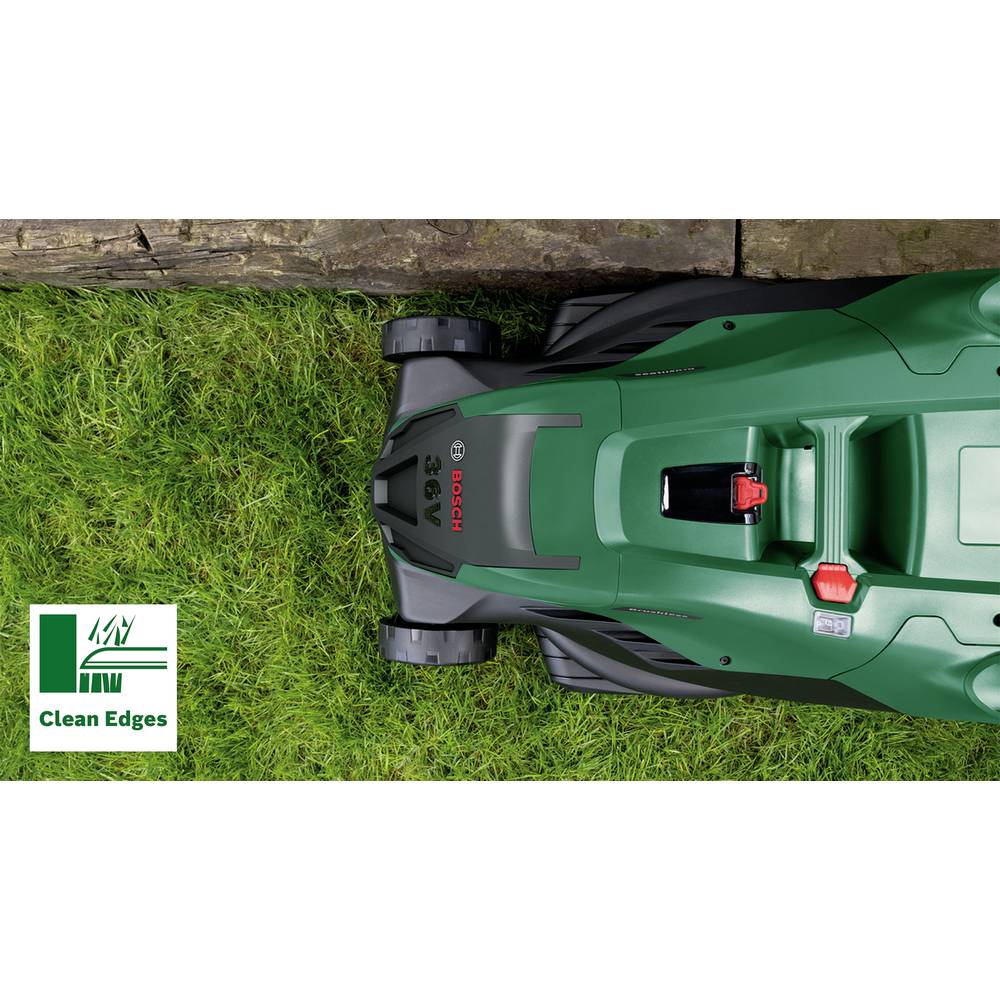 Technical specifications: Akkufeszültség: 36 V · Akkukapacitás: 2.0 Ah · Elem-/akkutechnológia: Lítiumion · Gyűjtőtartály: 50 l · Kerti szerszám jellemzők: 2 db akkuval,Töltővel · Működés típus: Akku · Súly: 17 kg · Type (Bosch): Bosch-do-it (groen) · Töltési idő: 1.1 h · Vágási magasság: 25 - 80 mm · Vágási magasság állítás: 7 x · Vágási szélesség (max.): 40 cm