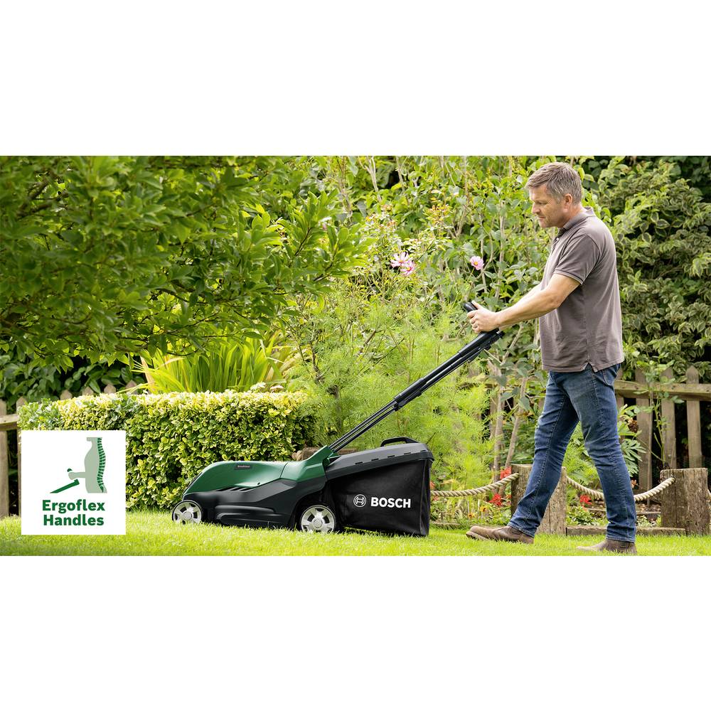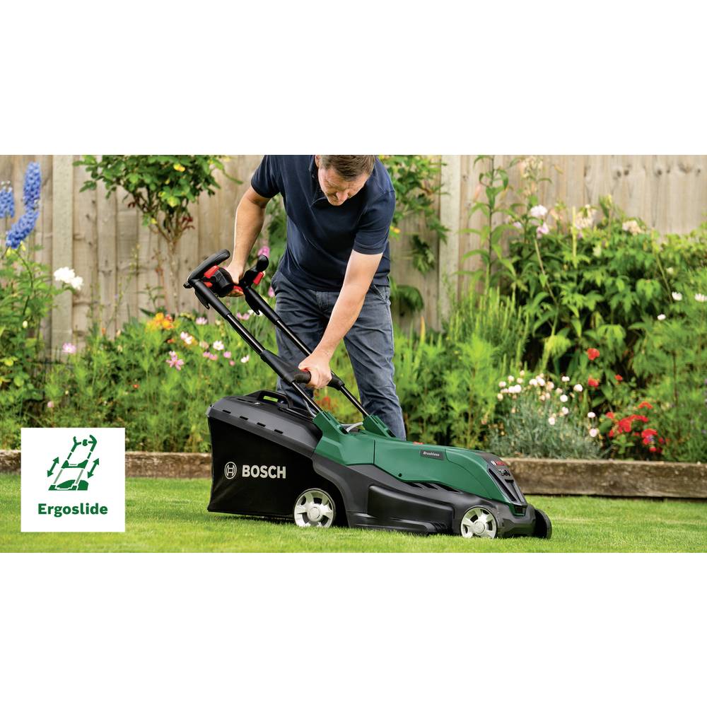 Tartsa karban a nagy gyepeket és takarítson meg időt a Bosch AdvancedRotak 36V-40-650 akkus fűnyíró nagy teljesítményű és hatékony 40 cm-es vágási teljesítményével. Ez a robusztus fűnyíró szénkefe nélküli motorral rendelkezik a kiváló vágási teljesítmény és a hosszabb élettartam érdekében, és hosszú vagy rövid fű optimális vágására készült. Több funkció biztosítja a könnyed és kényelmes fűnyírást Az Ergoflex fogantyúk kényelmes manőverezést tesznek lehetővé, és egyetlen gombnyomással 7 különböző fűvágási magasság-beállítás érhető el 25 és 80 mm között. A tiszta és jól karbantartott gyep érdekében egy 50 literes textil fűgyűjtő gyűjti össze a levágott füvet. Amikor a fűgyűjtő megtelik, értesítést kapsz. Miután a gyep lenyírva lett, az összecsukható fűgyűjtő és az Ergoslide funkció lehetővé teszi a fűnyíró kompakt tárolását. Az integrált Bosch Syneon technológia optimális teljesítményt és maximális üzemidőt biztosít. A készülék a 36V-os POWER FOR ALL rendszer része. Egyetlen akkumulátor használható minden 36 V-os POWER FOR ALL szerszámhoz.