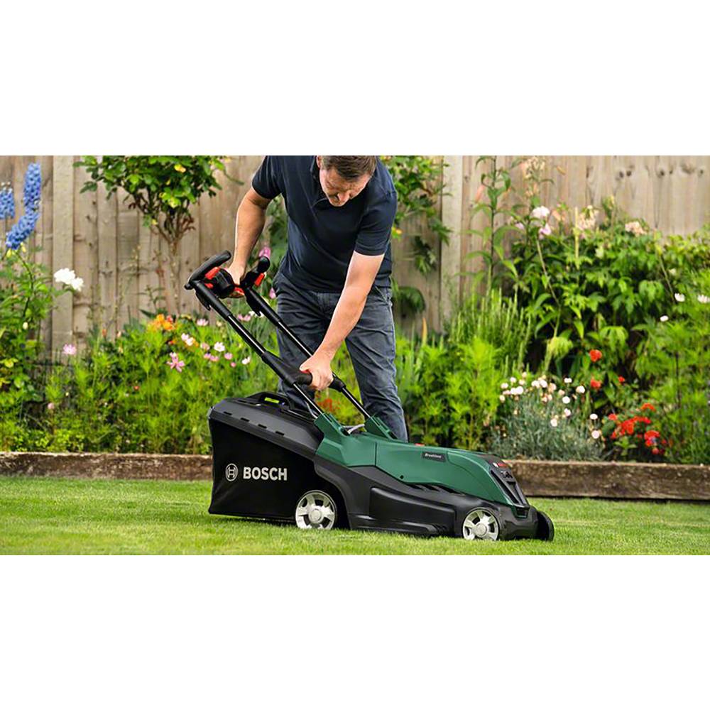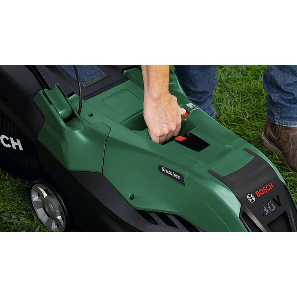 AdvancedRotak 36V-44-750 akkus fűnyíró, Erőteljes akkus fűnyíró a kiváló nyírásért és a fűnyesedék összegyűjtéséért, Kiváló vágási teljesítmény és hosszabb élettartam a szénkefe nélküli motornak köszönhetően, Kényelmes manőverezés és egyszerű tárolás az Ergoflex fogantyúknak köszönhetően, Ergoslide funkcióval, Kiváló minőségű textil fűgyűjtő tele töltöttségjelzővel, Syneon technológia az optimális teljesítmény és a maximális üzemidő érdekében, Kompatibilis a Bosch 36V POWER FOR ALL akkumulátorral