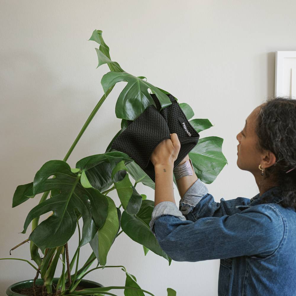 A természetben a szél és az eső tisztán és pormentesen tartja a növények leveleit, biztosítva a hatékony fotoszintézist az egészséges növekedéshez. A szobanövényeknek azonban támogatásra van szükségük. A puha mikroszálas anyagból készült Fiskars porolóval gyorsan eltávolíthatod a port és a szennyeződéseket a növényeid leveleiről, támogatva a fotoszintézist és a növekedést. A poroló két textúrával rendelkezik, amelyek gyengéden tisztítják a levél felületét. A két zsebnek köszönhetően könnyedén megtisztíthatod a penge tetejét és alját egyszerre. Az öntözővíz és a szennyeződés is villámgyorsan eltávolítható – mert balesetek történnek.