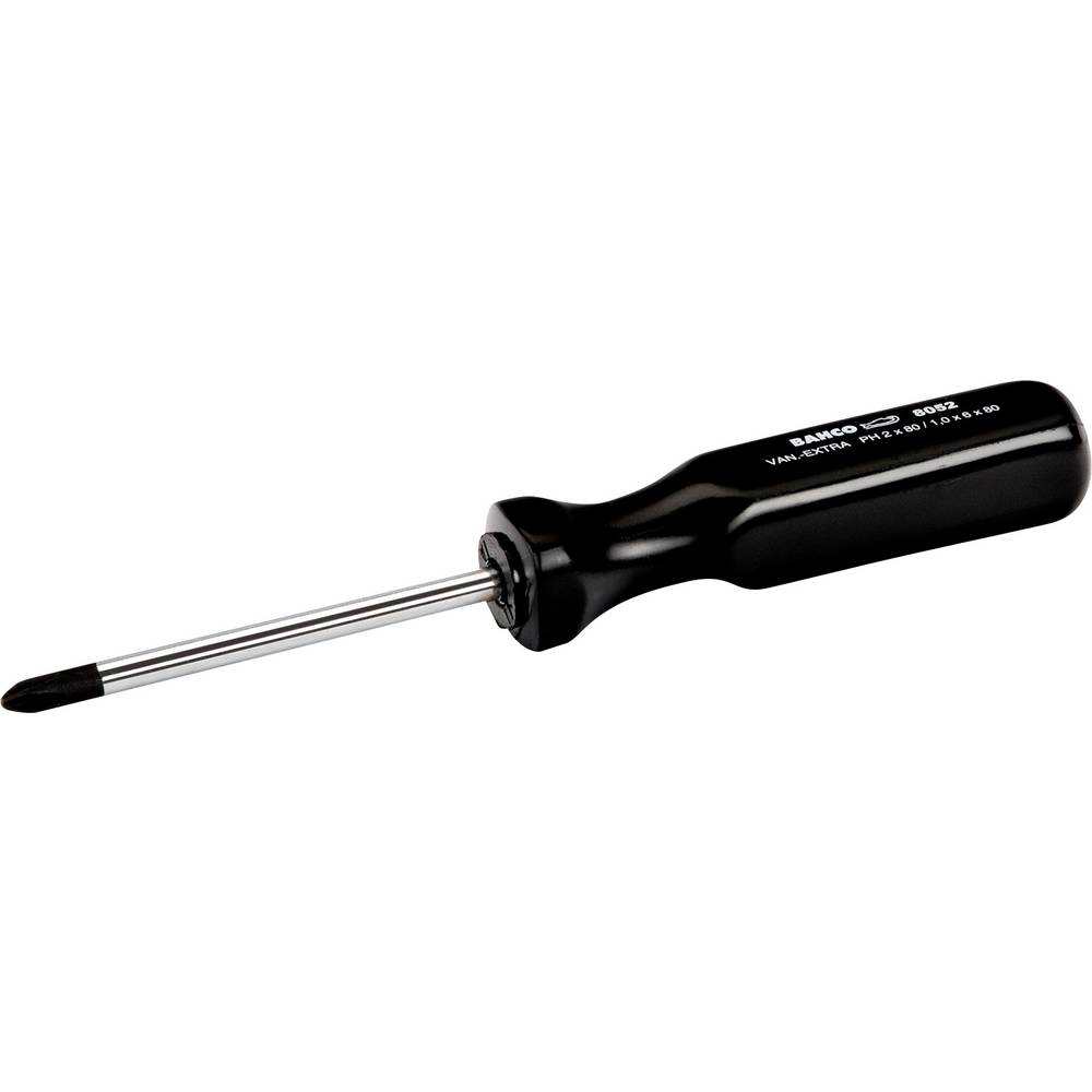 Kombinált csavarhúzó megfordítható pengével a réselt csavarokhoz és a Phillips PH csavarokhoz. Fekete négyzet alakú műanyag fogantyú.