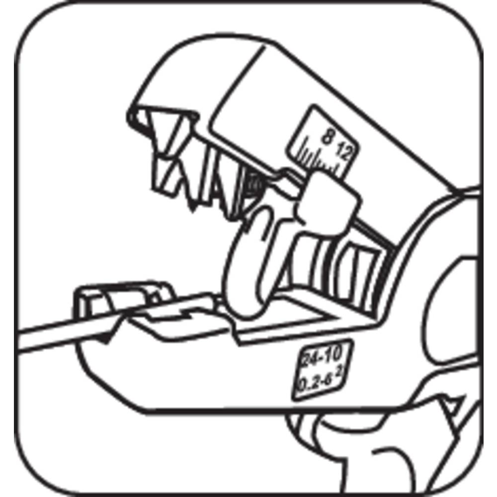 Műszaki adatok: Alkalmas: Vezetékek PVC szigeteléssel, Kerek vezetékek, Huzalok · Anyag: Műanyag (üvegszál erősítéssel) · Megállás hossza (max): 12 mm · Megállás hossza (min): 8 mm · Munkatartomány keresztmetszet (max.): 6 mm² · Munkatartomány keresztmetszet AWG (min.): 10 · Munkatartomány átmérő (max.): 6 mm · Munkatartomány átmérő (min.): 0.2 mm · Munkatartomány átmérő AWG (max.): 24 · Munkaterület keresztmetszet (min.): 0.2 mm² · Méret, hossz: 192 mm · Méret, szélesség: 149 mm · Súly: 126 g · További műszaki adatok: Oldalcsípő fogó vezetékekhez, 2 mm²-ig.
