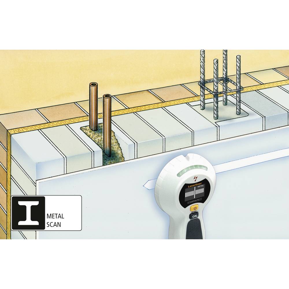 Hatékonyan megkeresi az olyan fémeket, mint a betonacél, a fűtőcsövek és a vízcsövek
