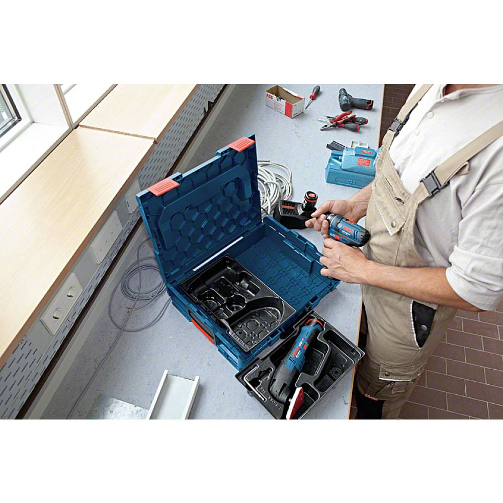 A GEX 12V-125/18V-125 Professional biztonságosan és rendezetten elhelyezhető a teljes betétben