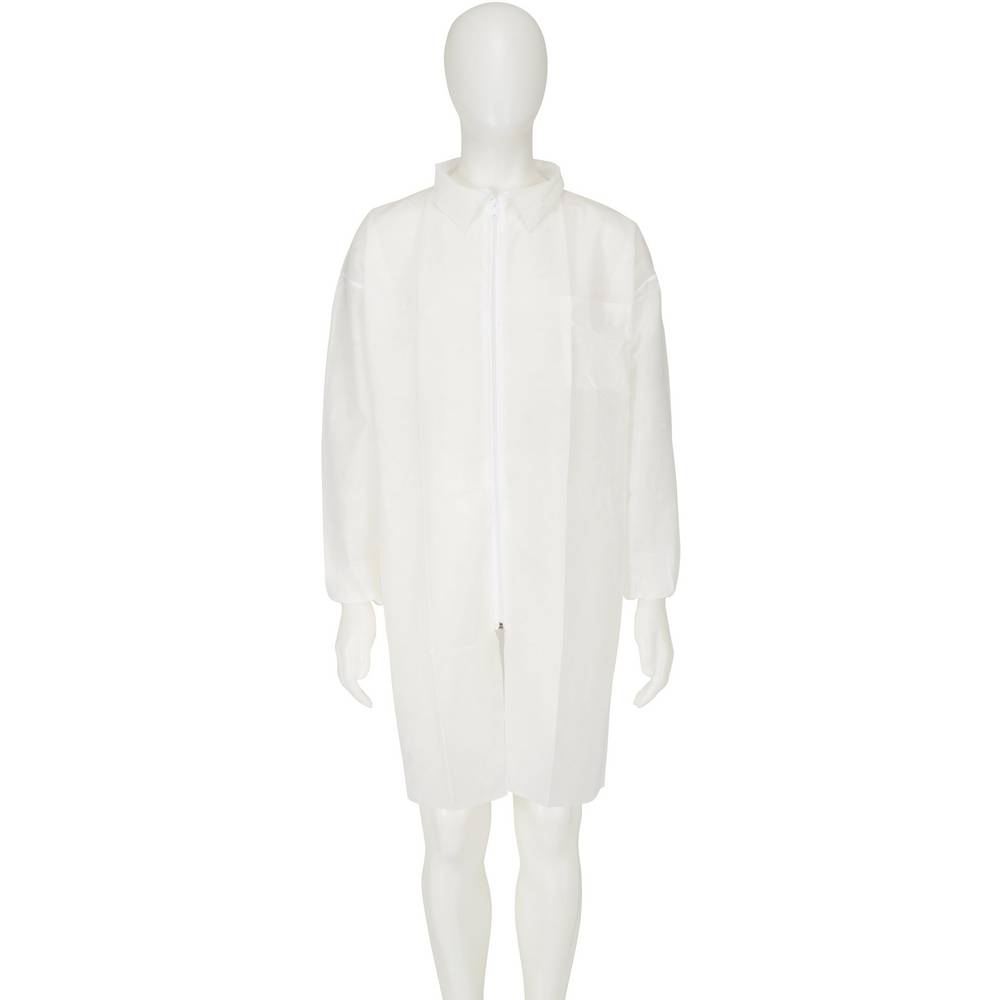 A 3M™ eldobható kabát 4400 jól használható látogató- vagy laborköpenyként. Polipropilén anyaga különösen könnyű és légáteresztő. Cipzárjának köszönhetően az eldobható kabát könnyen fel- és levehető. A 3M™ 4400WXL eldobható kabát XL méretű és fehér színű.